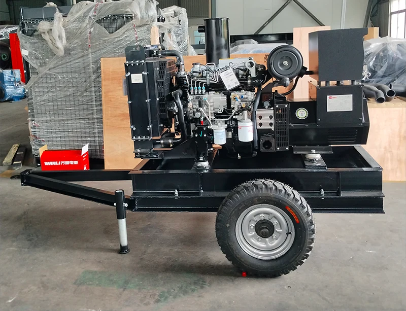 Das gesamte Fahrzeug ist mit Leuchten von Lenk- und Bremsanzeigen ausgestattet und auch mit einem Standardstopfen für Rücklichter ausgestattet. Die mobile Dieselgenerator-Set-Serie verfügt über eine Vielzahl von Strukturen und Funktionen: Handpush, Dreirad, Allrad-, Autokraftwerk, Anhängerkraftwerk, Mobile Low-Noise-Kraftwerk, mobiles Container-Kraftwerk, Stromtechnik-Fahrzeug usw.